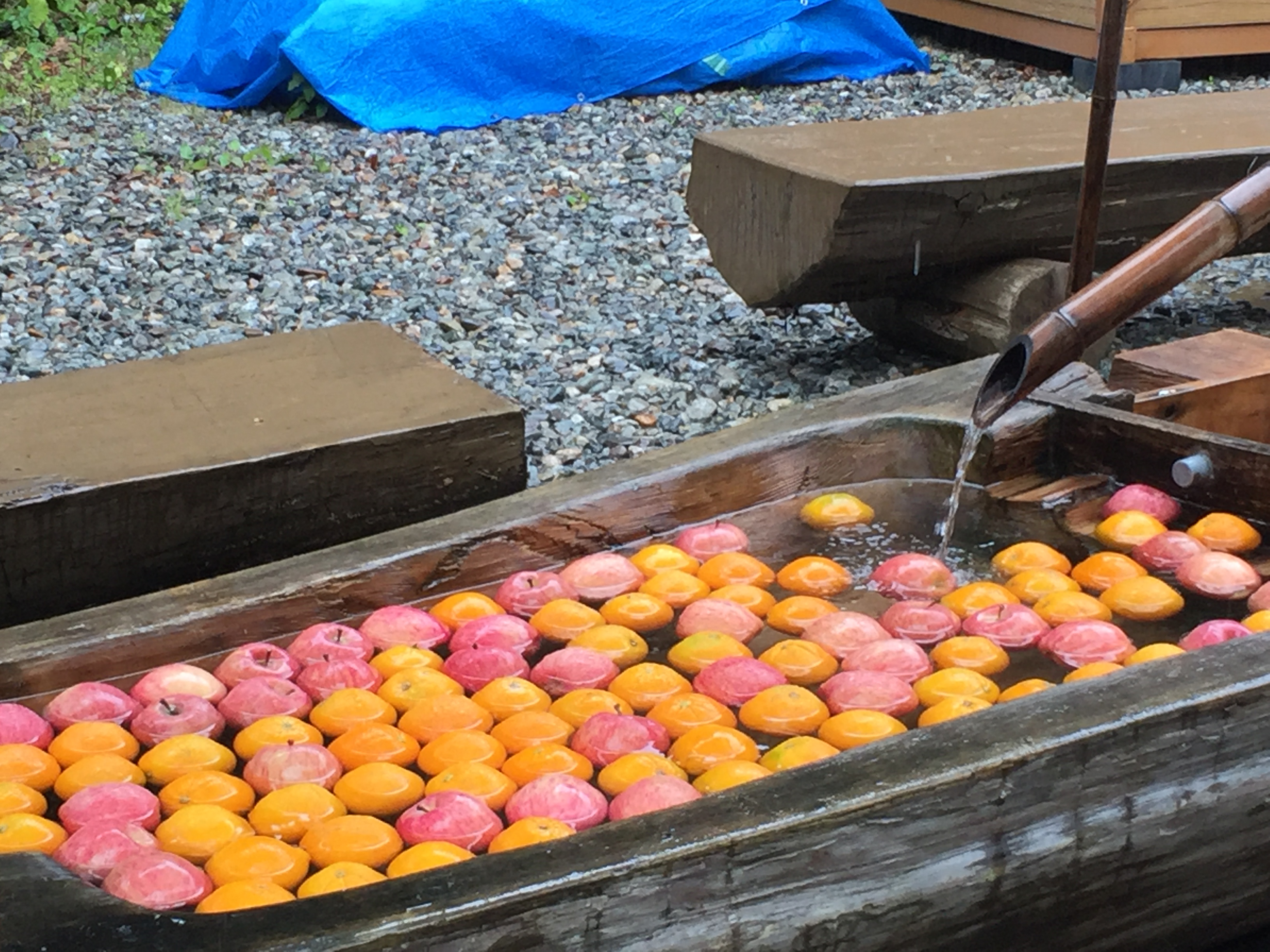 わさび平小屋でおいしそうに冷えたフルーツ!